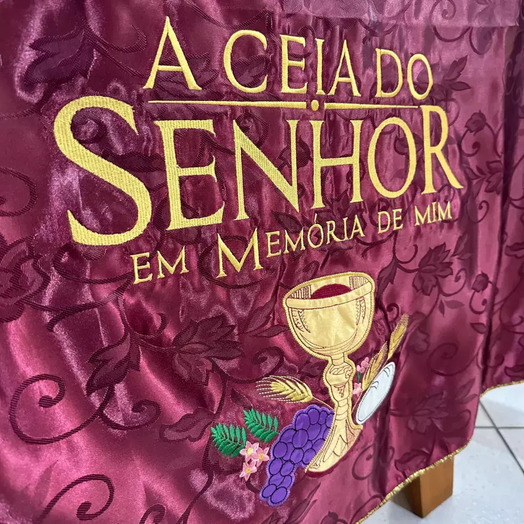 Toalha Vinho Bordada, elegante e perfeita para decorar mesa de Ceia.